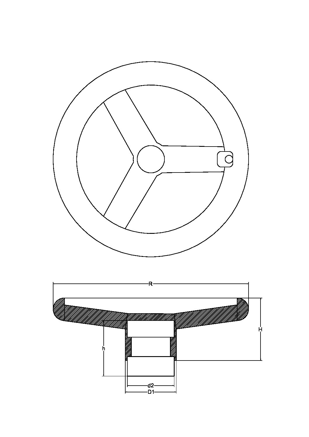 Üç bölümlü bakalit volan, el ile yapılan döndürme ve ayarlama işlemleri için kullanılan sağlam ve ergonomik bir kontrol elemanıdır.