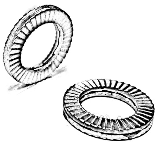 Her pul çifti, iç yüzeyinde kama şeklinde eğimli dişlere, dış yüzeyinde ise normal tırtıllı yapıya sahiptir. Bu sistem, yalnızca dönmeyi değil, aynı zamanda eksenel gevşemeyi de durdurur. Özellikle titreşimli makinelerde, yüksek güvenlik gerektiren bağlantılarda tercih edilir. Geniş ve dar olarak iki tipi vardır, stoklarımızdan teslim edilebilir.