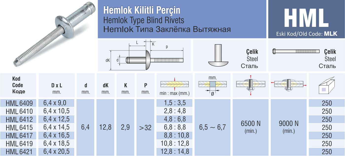 “Micro‑lok Kilitli Çelik Perçin”, “MLK Serisi Ağır Hizmet Perçin”, “Hemlok Kilitli Perçin” şeklinde de bilinir.:contentReference[oaicite:2]{index=2}